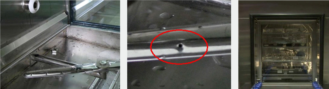第一道工藝是噴淋清洗,目的是通過(guò)大流量的噴洗,將器械表面附著的血污等雜質(zhì)沖洗掉。美雅潔研發(fā)出鑲嵌在噴淋臂里的扇形噴嘴,能夠噴出細(xì)顆粒,覆蓋范圍更廣,噴洗力度更大的清洗效果,比之同行更勝一籌。